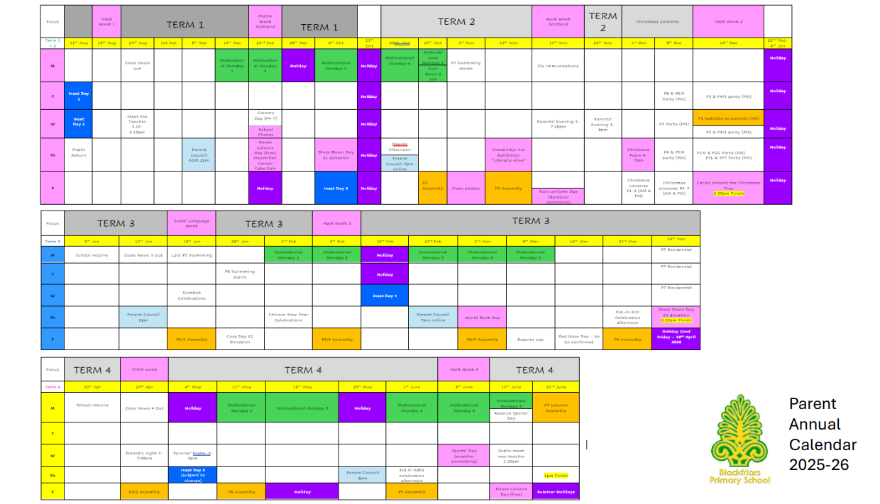 Parent Annual Calendar
